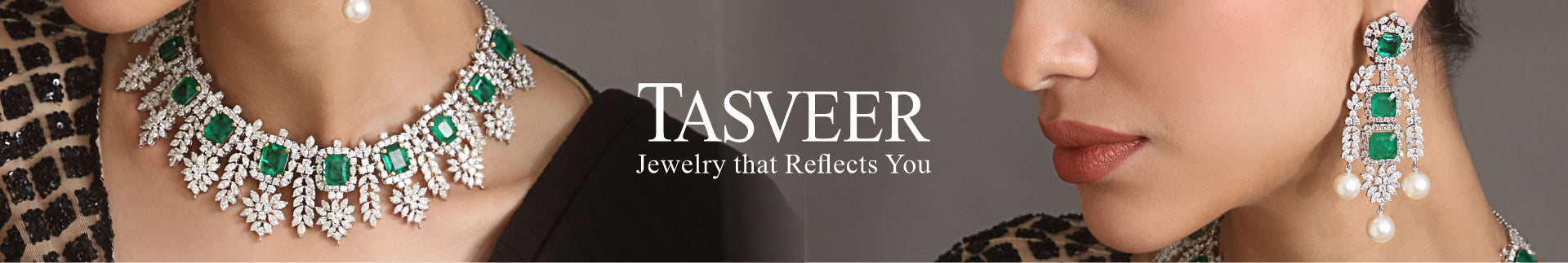 Tasveer Long Necklace With Diamonds And Blue Saphire